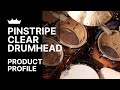 The Pinstripe® Clear features midrange tones with low-end and increased durability. Constructed with 2-plies of 7-mil Clear film, Pinstripe® Clear drumheads have an overtone reducing agent applied between the 2-plies providing overtone control with increased attack. The Pinstripe® series is one of the world’s most popular drumheads.