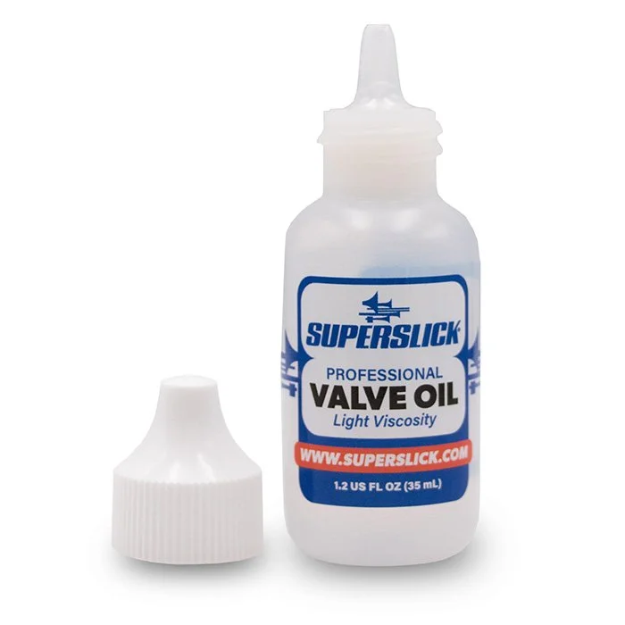 Superslick valve oil with special additives for long life and fast valve action. Light viscosity. Designed for long-lasting performance. 1.25 fl oz bottle. Oxygen Music stocks a wide range of brass accessories including the Superslick valve oil, perfect for keeping your trumpet valves moving smoothly.